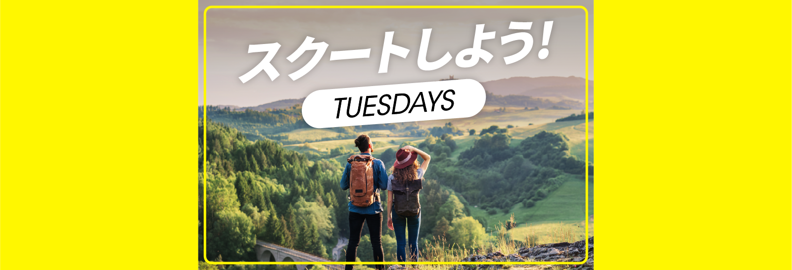 次のバケーションプランは、#GottaScootTuesdaysのお得なセールで!